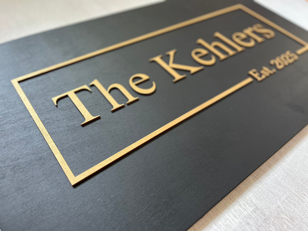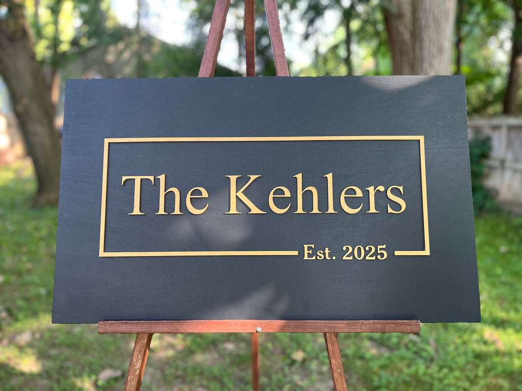 3D Last Name/Company Logo Sign, Established Wood Custom Sign with Gold Text for home, office, family reunion